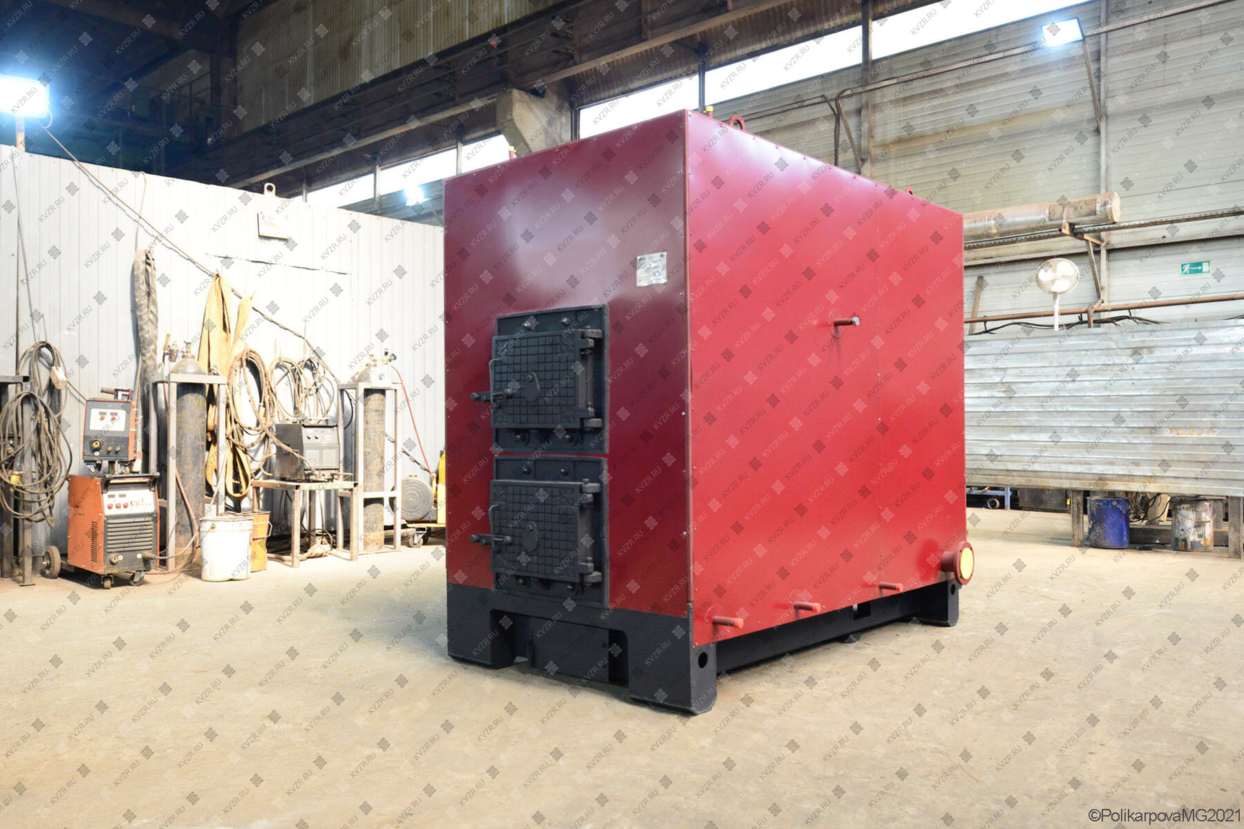 Котельный завод изготавливает промышленные комбинированные котлы на дровах и угле, отапливаемая площадь от 2000 м². Температура воды 70-95 градусов. Высокое КПД, надежность работы, удобство обслуживания.