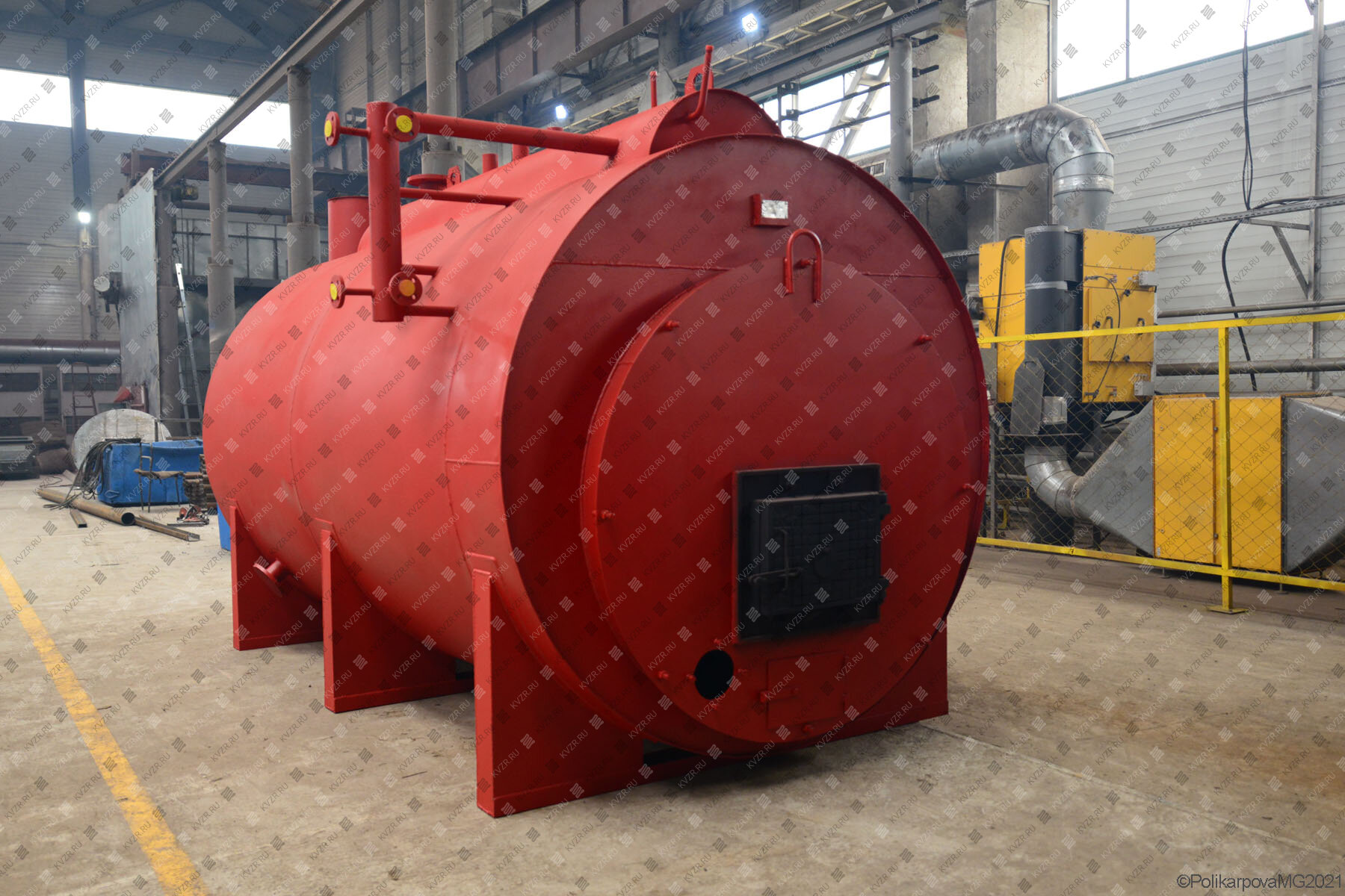 В верхней части обечайки верхнего барабана установлены штуцера для крепления пружинных предохранительных клапанов, главный пароотводящий штуцер, трубка крепления манометра, труба подвода питательной воды, внутри верхнего барабана смонтированы сепарационное устройство и труба ввода питательной воды. Трубная система собрана на общей раме.